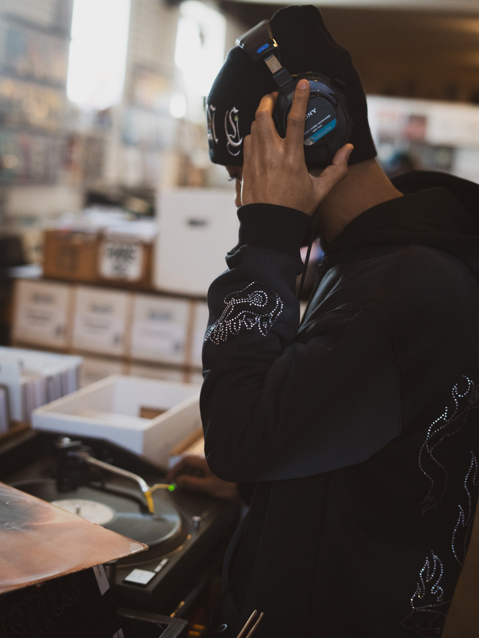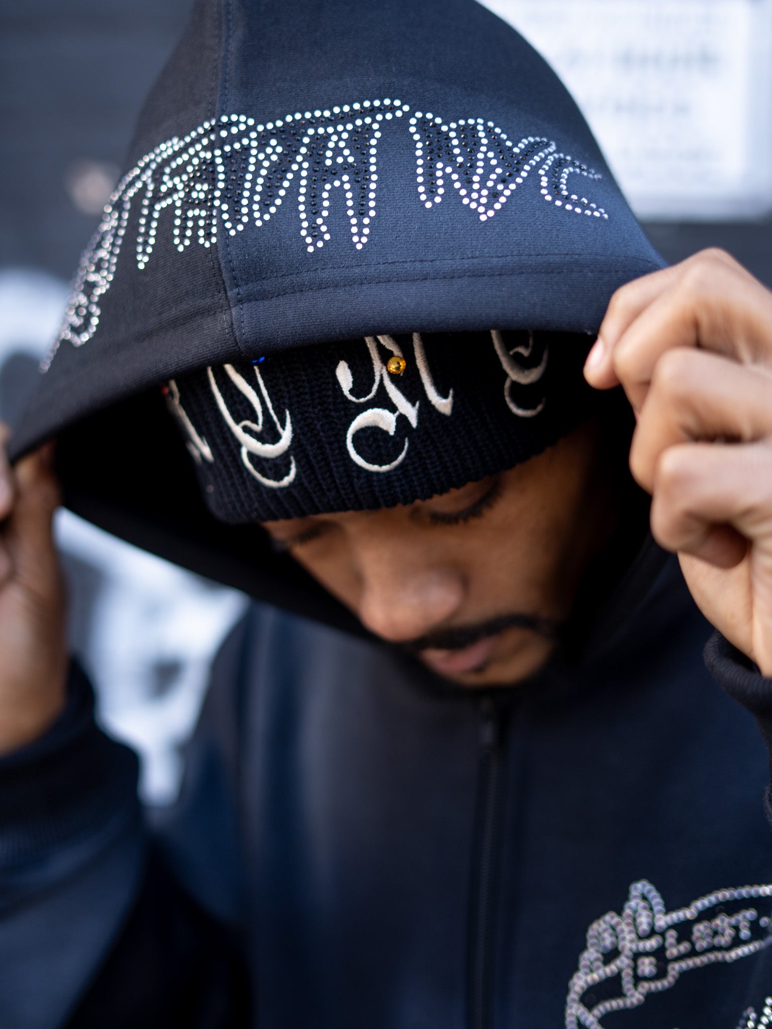 Lost Faith NYC Hood: Bold rhinestone lettering for a statement look